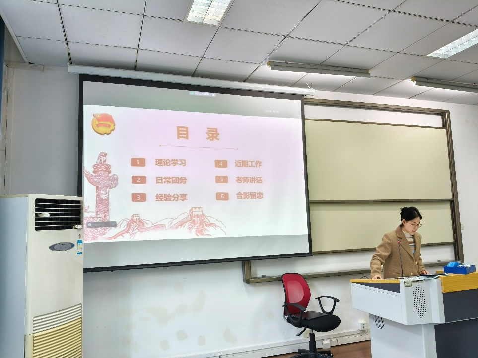 此次会议还邀请了金融系2023硕士班团支书王懿蕊同学进行经验分享,介绍了关于如何进行支部组织建设和团日活动准备等方面的优秀经验。王懿蕊同学表示,团支书工作最重要的就是要团结支部同学,丰富活动形式,将支部活动开展在同学之中。