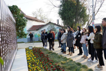 博士生严涣热情地接待了调研组,与大家一同前往本次主题教育活动的第一站——新市镇白谷洞村美丽乡村建设点,白谷洞村支部书记刘攀为大家做了讲解。白谷洞村位于京山市城市规划控制区,人均耕地面积不足 0.5 亩,不适宜传统大规模农地流转产业发展和集中新建各类房屋,经镇村两级多方论证,发挥交通便捷和文化资源的比较优势,主动融入京山市全域旅游新动能培育的大背景,定位发展城郊休闲型的都市后花园。刘书记为大家介绍了都市田园的特色菜地,寻农谚,亲农桑,并且带领大家参观了外婆书屋、孝廉广场等地,使大家感受到白骨洞村在打赢脱贫攻坚战和实施乡村振兴战略中收获的丰硕成果。