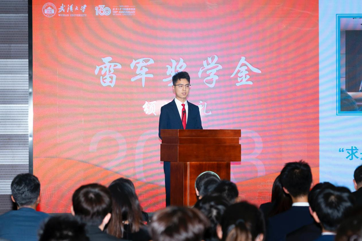 “雷军卓越奖学金”,张平文校长、雷军校友为其颁奖。在颁奖典礼上,王意通作为“雷军卓越奖学金”获得者代表,进行了《自强青春志,拓新恒不渝》的主题演讲,分享了他对“自强、弘毅、求是、拓新”校训精神的感悟和体会。