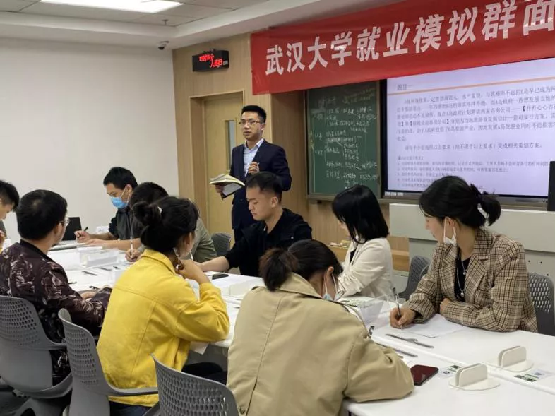 就业模拟群面第一次训练顺利举行,本次活动请到景瑞地产武汉公司行政总监陈小风和人事行政经理刘晓丽作为嘉宾出席,共有8个院50多名同学参与本次活动。
