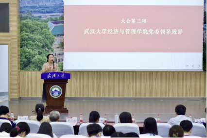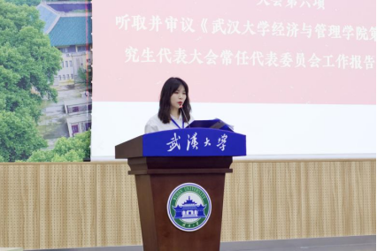研究生会执行主席徐高铮同学发言。徐高铮同学代表校研究生会和各兄弟培养单位研究生会向大会的顺利召开致以热烈祝贺,肯定了经管院研究生会过去半年各方面的成绩,并就面向新征程的研究生会如何展现新气象、实现新作为分享了自己的学习感悟。