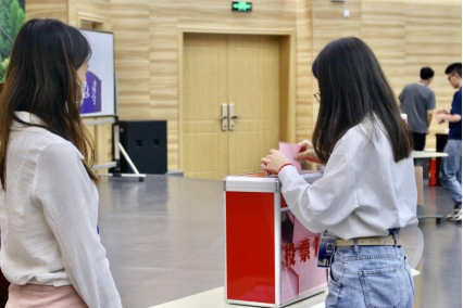 经过严格公正的计票,张一琪、林菁文、洪文凤3位同学当选为海棠书屋