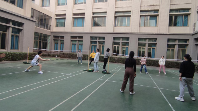 在羽毛球社群微信群里发出号召后,来自不同专业、不同班级、不同年级的十余名同学便积极报名参与了本次日常练习,他们携带装备、穿着整齐、精神洋溢地于10月20日下午来到了海棠书屋
