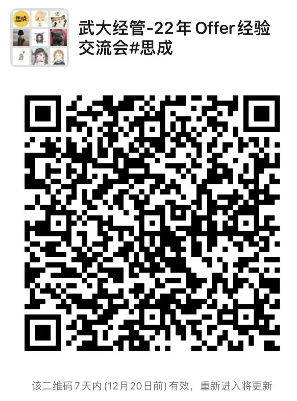 长按并识别下方二维码,进入武大经管-22年Offer经验交流会