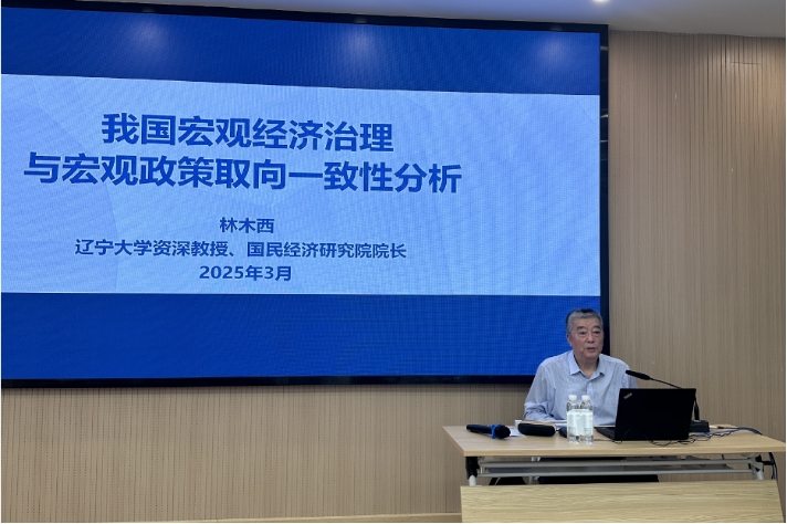 On March 26, 2025, Professor Lin Muxi, Dean of the National Economic Research Institute at Liaoning University, was invited to deliver an academic lecture titled "Macroeconomic Governance and Consistency Analysis of Macro Policy Orientations" at the School of Economics and Management as part of the Yangtze Forum. The event, hosted by Wuhan University and organized by the Institute for Advanced Studies in Humanities and Social Sciences and the School of Economics and Management, was attended by Professor Luo Zhi, Vice Dean of the School of Economics and Management, Professor Yang Mian, Director of the Economic Research Institute, faculty members, and students. The forum was chaired by Professor Gong Liutang.
