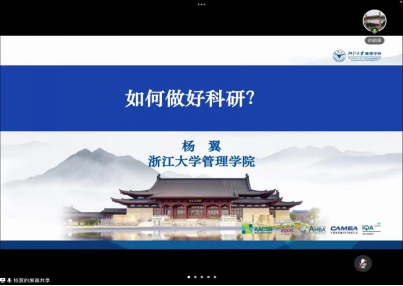 浙江大学管理学院副院长杨翼教授首先作了题为“如何做好科研”的报告。报告主要从选题构思、文献阅读、问题精炼、问题描述、问题分析和论文审稿五个方面诠释了如何打造一篇高水平的管理学论文。杨翼教授认为,一般的研究是针对过去的,好的研究是针对现在的,超一流的研究是针对未来的,研究生做研究要致力于解决别人无法解决的问题,对于某个领域提出新的见解,而不是解决一个不是问题的“新问题”。杨翼老师特别指出,在阅读文献寻找研究问题的过程中,不要盲目地阅读文献,而要选择好的文献去学习。