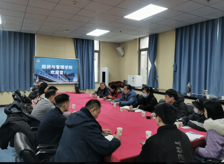 ,副院长刘林青在学院认证会议室接待客人一行,参加会谈的还有市场营销与旅游管理系系主任曾伏娥。