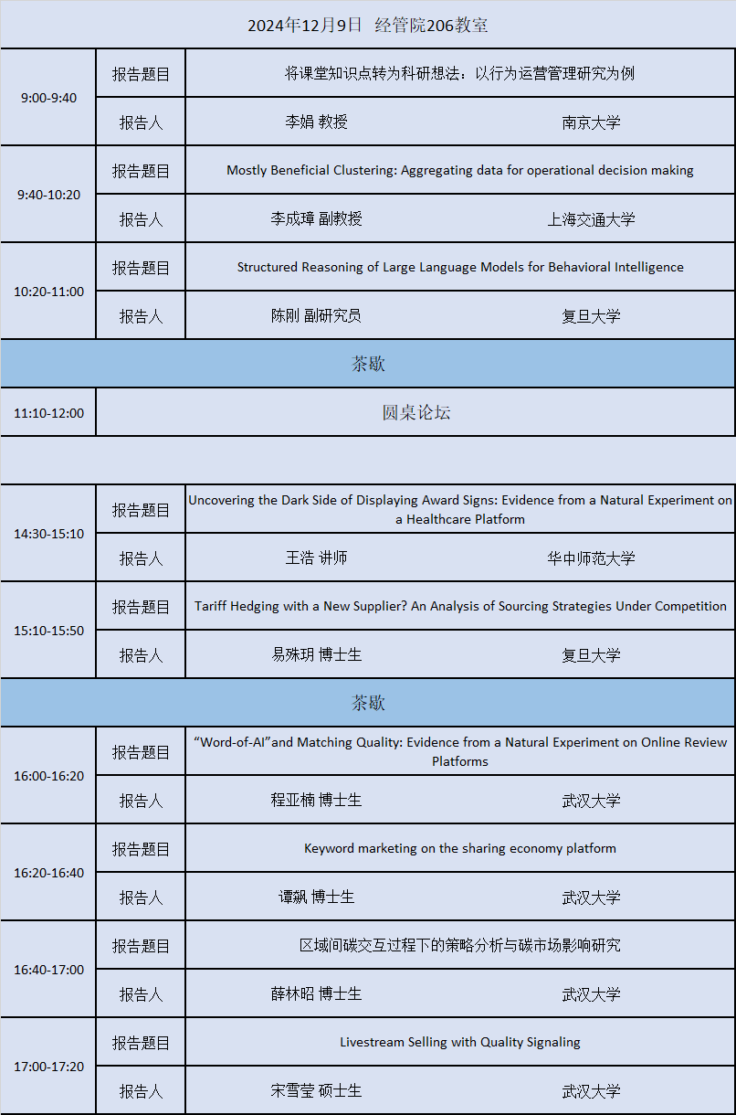 2024年度珞珈经管研究生学术沙龙之经济学系研究生学术午餐会(秋季学期)成功举办