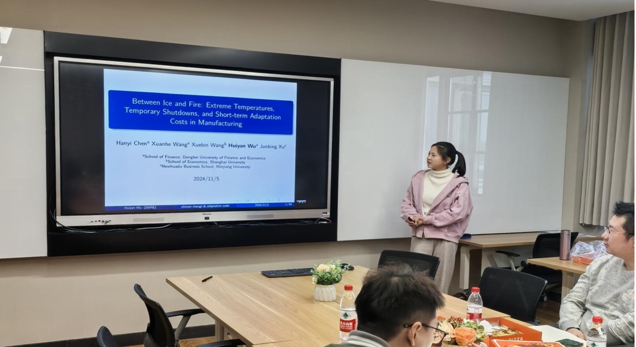 11月5日,来自东北财经大学的硕士研究生吴慧妍报告了其研究论文“Between Ice and Fire: Extreme Temperatures, Temporary Shutdowns, and Short-term Adaptation Costs in Manufacturing”,海棠书屋