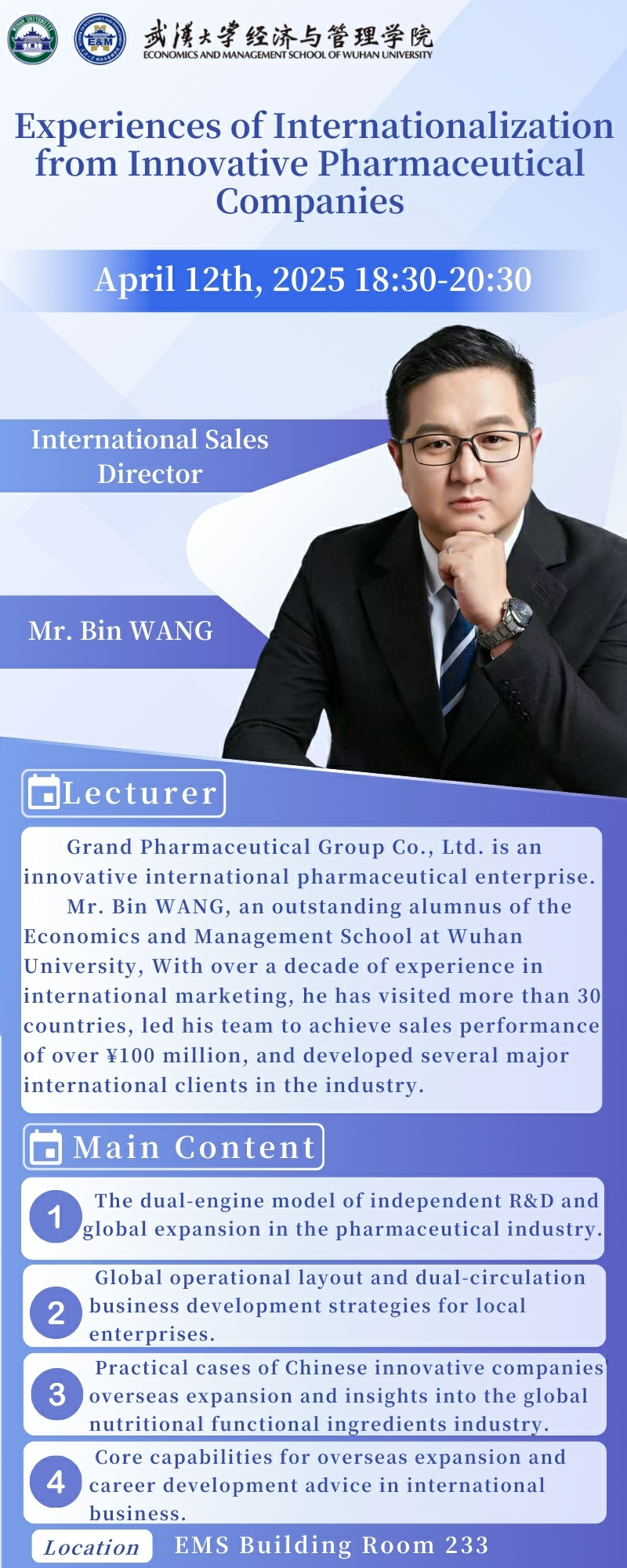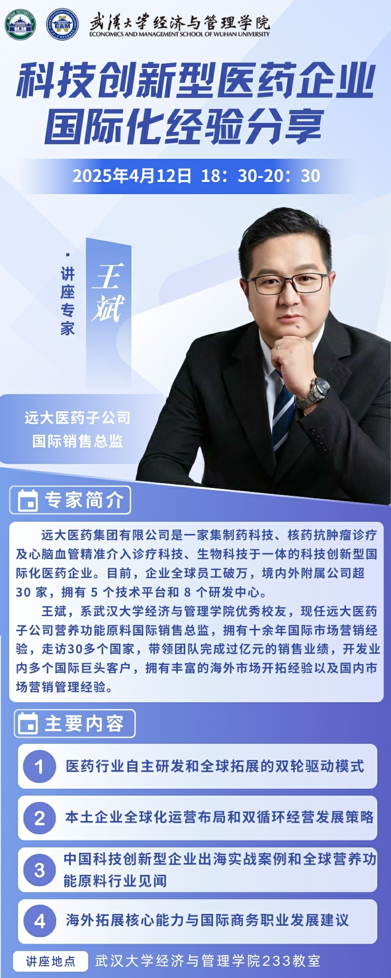 【行业发展前沿讲座】预告——科技创新型医药企业国际化经验分享