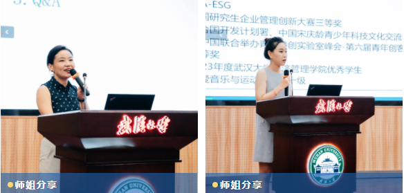 经验分享环节,龙泉分享了MBA的备考心得与入学体验,张怡分享了自己的MBA学习生活与安排及就读心得体会。