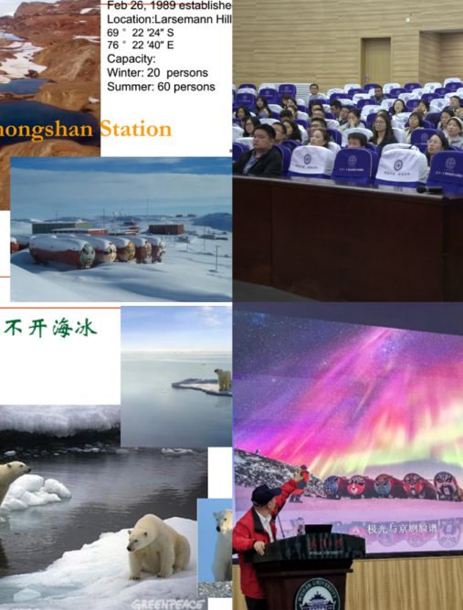 讲座中,王泽民教授通过图片、视频等丰富多彩的形式从南北极简介、全球变化及其对两极的影响、两极对全球变化的反作用、南北极科学考察以及测绘科学在极地事务中的作用等五个方面,生动形象地讲述了人类的生存活动导致了地球的温室效应,在全球升温背景下,南北极发生了剧烈变化,极地海冰、冰川严重退缩,北极海冰融化,北极熊的生存受到巨大威胁,格陵兰岛冰盖消融,同时南极冰架也发生了大规模崩解,两极对全球变化的反作用导致海平面上升、极端天气频发,带来未来气候变暖、极端高温事件增加等诸多影响。全球很多国家已经意识到保护地球的重要性,中国一直在积极进行南北极考察,自1984年10月,中国正式成立第一支南极考察队至今,中国已拥有4个南极科学考察站和1个北极科学考察站,共进行了38次南极科学考察活动,同时中国在国际极地事务中也相应取得了应有的合法权益和地位。中国也积极进行北极的考察活动,海棠书屋