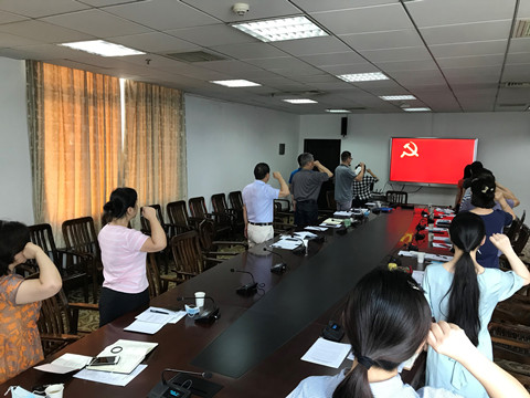 组织生活会设置了重温入党誓词环节,支部全体党员起立面向党旗重温入党誓词。