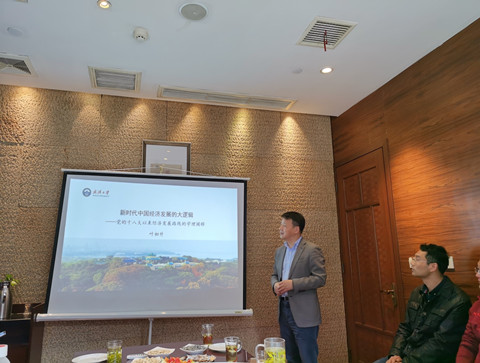 随后,《经济评论》主编叶初升教授以《新时代经济发展的大逻辑——党的十八大以来经济发展路线的学理阐释》为题,为三个支部做了一场精彩的学术报告。
