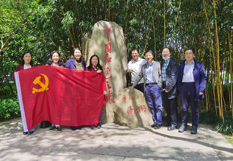 “红船精神”是中国革命精神之源,是党的先进性之源。习近平总书记概括为开天辟地、敢为人先的首创精神,坚定理想、百折不挠的奋斗精神,立党为公、忠诚为民的奉献精神。这一精神在百年来一直激励和鼓舞着中国共产党站在历史的高度、走在时代的前列,以百折不挠的意志带领全国各族人民不断战胜革命、建设和改革道路上的种种艰难险阻,成为推动中华民族伟大复兴不竭的动力之源。支部成员在结束南湖之行后继续来到时任浙江省委书记的习近平曾经亲自培土奠基的南湖革命纪念馆前合影留念。