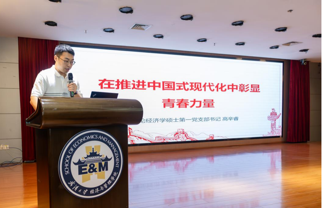 理论经济学硕士第一党支部书记高辛睿同志带领支部成员们深入学习习近平总书记在庆祝中华人民共和国成立75周年招待会上的重要讲话,以“在推进中国式现代化中彰显青春力量”为主题,从“筑牢自信之基”、“坚定奋斗之志”、“砥砺担当之勇”三个方面,对习近平总书记的重要讲话进行全面而深入的解读。