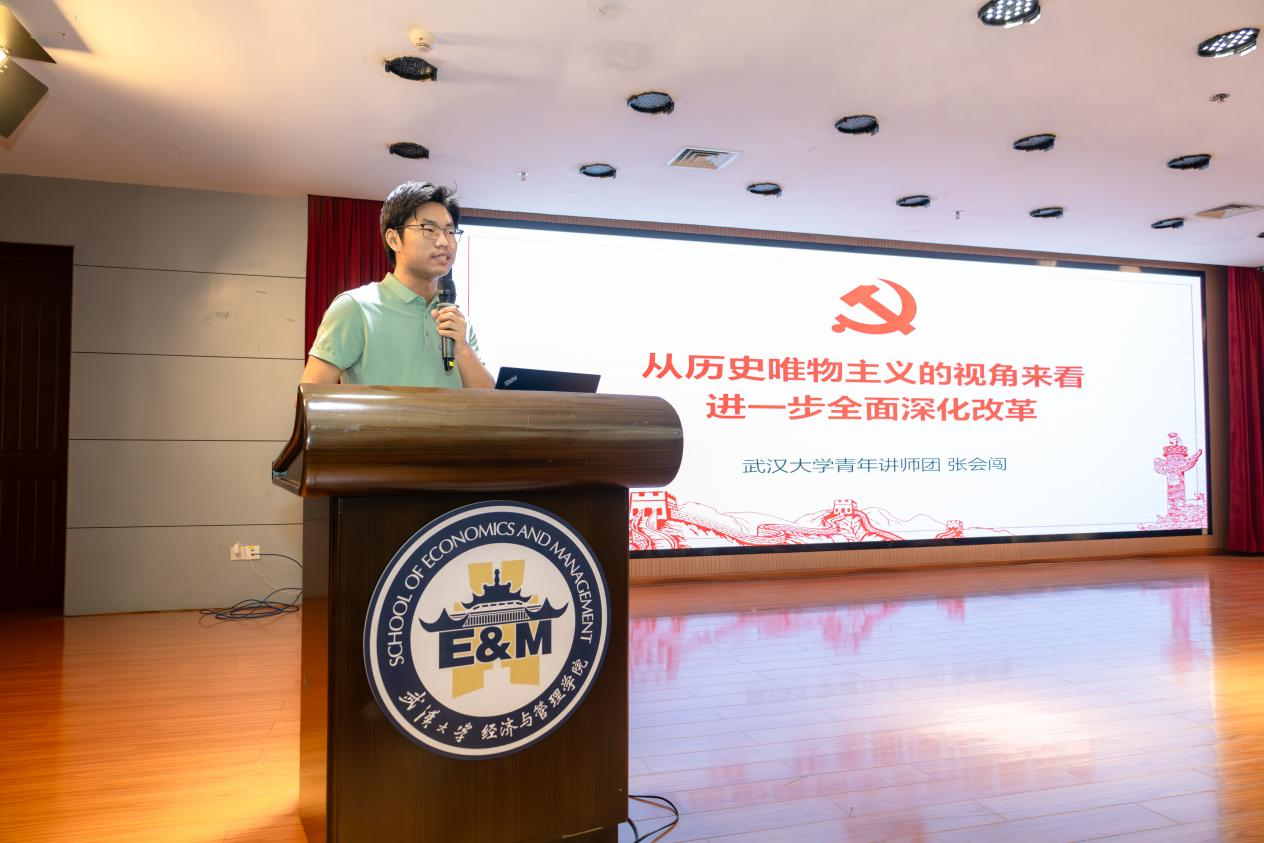 青年讲师团成员、马克思主义学院2024级硕士研究生张会闯同志,围绕“从历史唯物主义的视角来看进一步全面深化改革”,宣讲党的二十届三中全会精神。他强调,要进一步推动生产力和生产关系、经济基础和上层建筑、国家治理和社会发展相适应,为中国式现代化提供强大动力和制度保障。