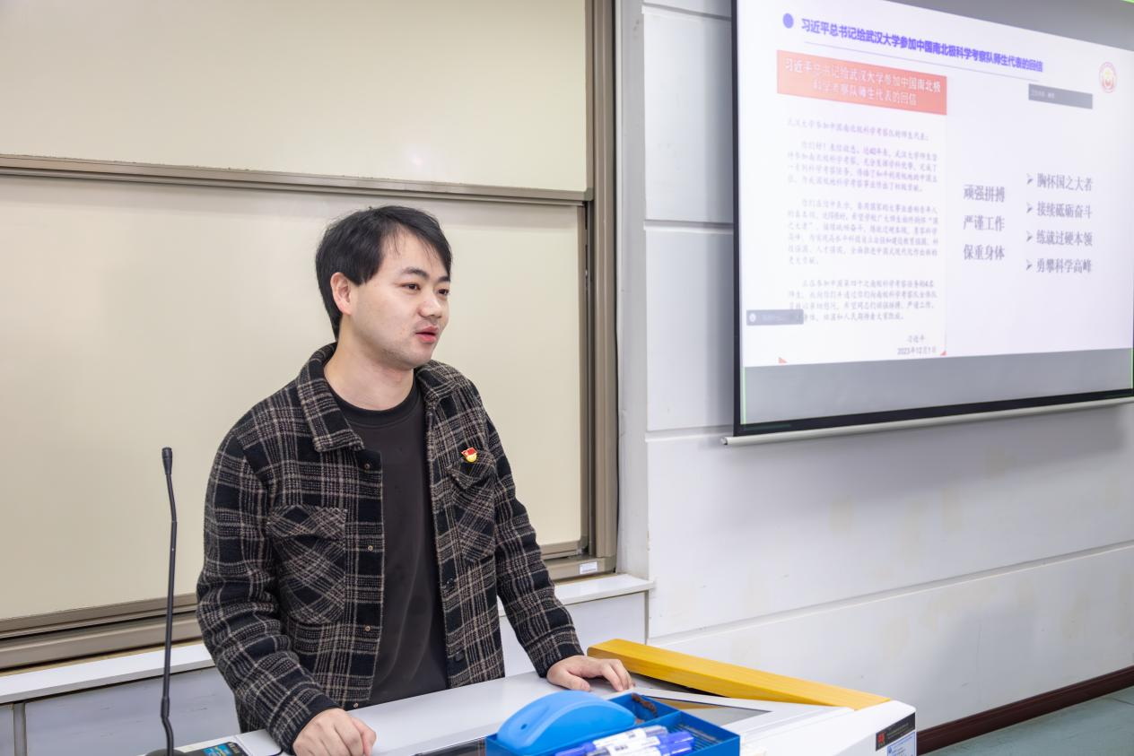 博士生宣讲团讲师刘进思同学以《用大事业磨砺真本领 在大事业中勇担当》为题,带领与会同学重温了习近平总书记回信的核心精神与深远意义。四十载南极科考,武大人凭借坚韧不拔的毅力和卓越的专业能力,完成了一系列高难度的科研任务,取得了举世瞩目的成就,不仅展现了武大人的勇气与智慧,更是对习近平总书记回信中胸怀“国之大者”精神内涵的深刻诠释。科考队员们在极地书写的青春篇章,深深触动了与会同学,同学们纷纷表示会牢记习近平总书记的殷殷嘱托并外化于行,在科研和工作中主动担当、锐意进取,以自强担使命,以拓新创未来。