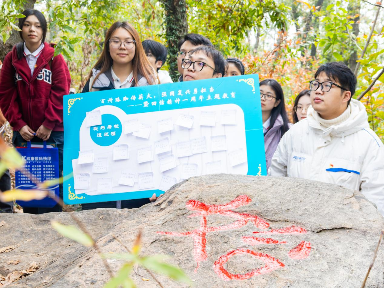 出发,走向建设社会主义强国的每一个岗位”,杨志威老师深情寄语同学们,激励他们以实际行动践行这份精神。同学们站在石前,深感责任重大、使命光荣,同时也围绕着“我的第一步”分享了自己的奋斗目标与规划。