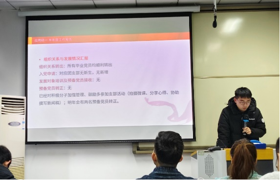严瑞松和吴林轩分别就各自支部的半年度工作进行了汇报,总结了支部活动、党员发展等方面的工作,并展望了未来的工作计划。