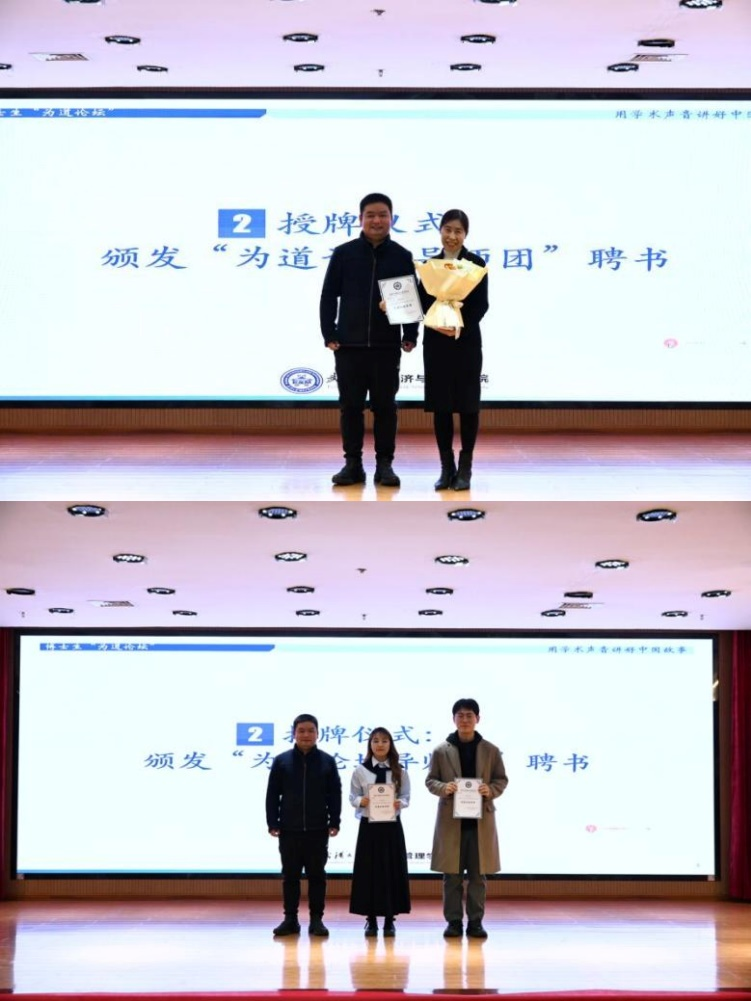第十五届“我心目中的好导师”荣誉称号获得者邹薇教授、2022级市场营销专业博士生邓潇扬和2021级企业管理专业博士生王茂琼颁发“为道导师团”聘书,以表彰他们在学术领域的卓越贡献和对论坛的支持。