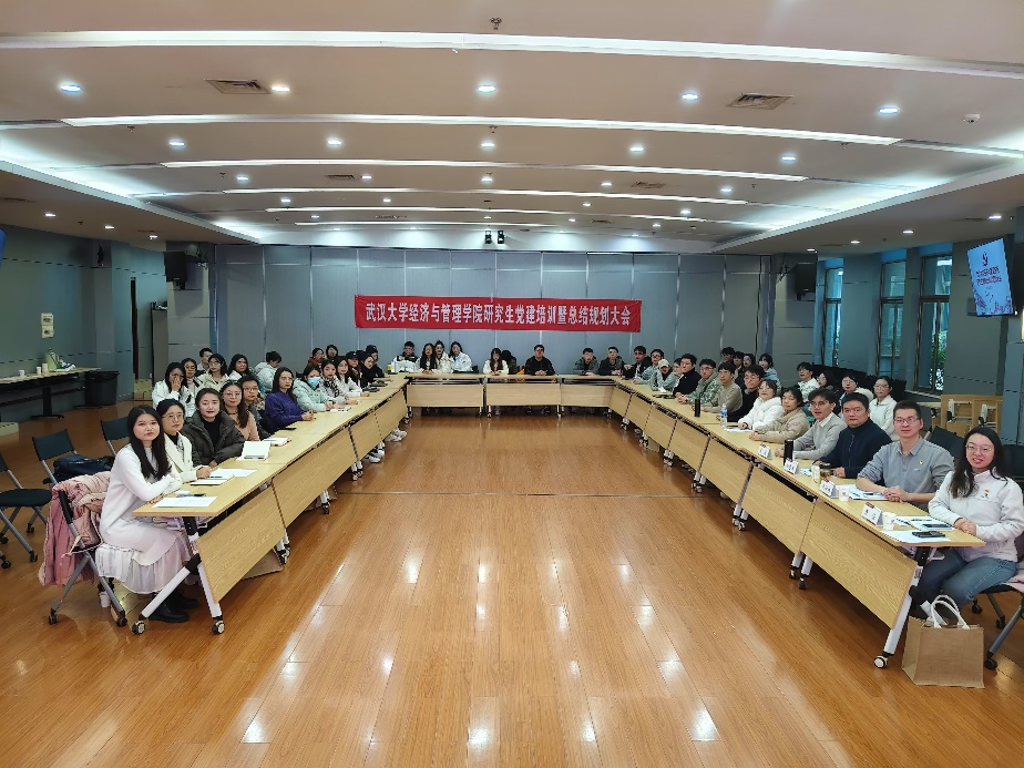 研究生党建工作培训暨2025年度规划大会在学院天壕珞珈梧桐报告厅举行。本次活动旨在总结研究生2024年党建工作,加强研究生党建工作骨干能力培训,谋划2025年工作,促进各研究生党支部全面进步、全面过硬。学院党委副书记杨志威、研究生工作办公室主任沈仕雄、全体研究生党支书及研究生党建研究会全体成员出席本次会议,会议由研究生党总支委员陈文娟主持。