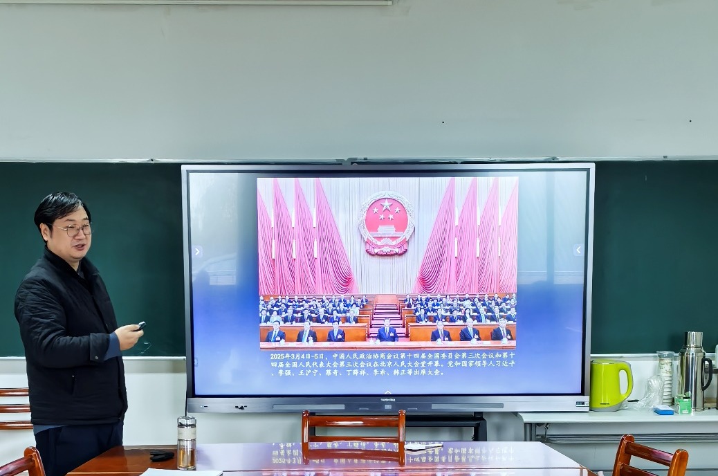 3月13日下午,教师第二党支部在世界经济系会议室组织全体党员集中学习2025年“全国两会”精神,该活动由支部书记胡艺主持。