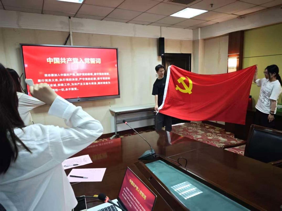 中南财经政法大学莫锁文带领全体党员同志重温入党誓词,通过铿锵有力的宣誓,唤醒党员的初心使命,激励大家以更高的标准严格要求自己。