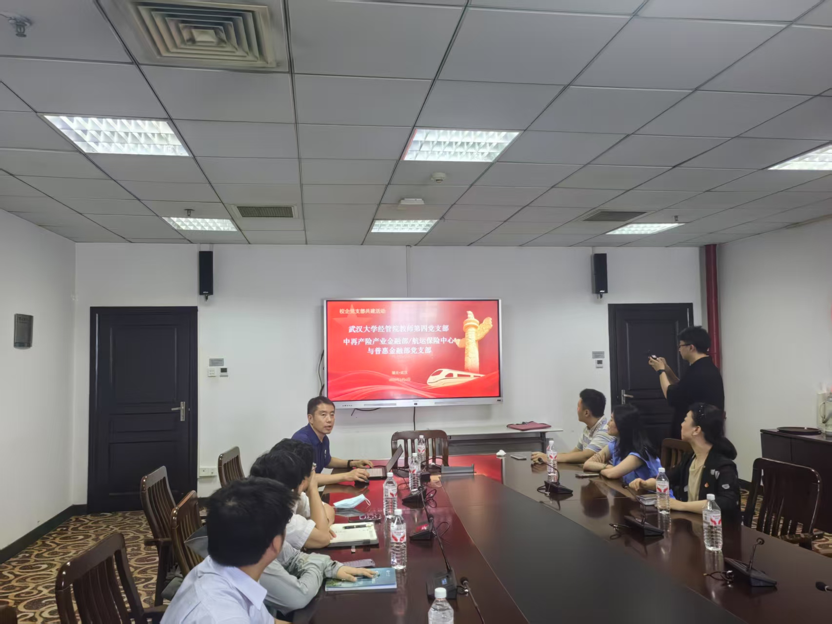 为深入学习贯彻习近平总书记关于党的建设的重要思想,推动校企合作与协同育人,学院教师第四党支部与中国财产再保险股份有限公司(以下简称“中再产险”)产业金融部与普惠金融部党支部于2025年6月6日下午联合举办主题共建活动。中再产险党支部成员、学院第四党支部全体党员以及海棠书屋