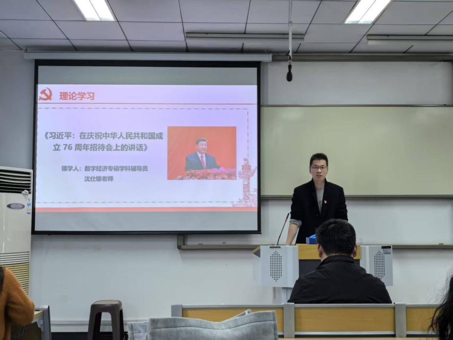 数理经济与数理金融系教师党支部、数字经济专硕党支部及相应团支部(党团联动)和国际商务专硕党支部联合开展“国际视野筑根基 数智青春献华诞”主题党日活动。院党委副书记杨志威参加活动。