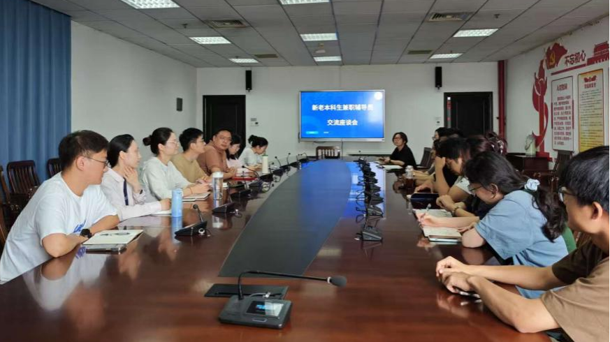 新老本科生兼职辅导员交流座谈会在学院第五会议室顺利召开。学院党委副书记李好老师、本科生工作办公室主任张可儒老师、本科生各年级专职辅导员以及新老兼职辅导员齐聚一堂,共同围绕兼职辅导员工作展开深入交流与探讨,本次座谈会由张可儒老师主持。