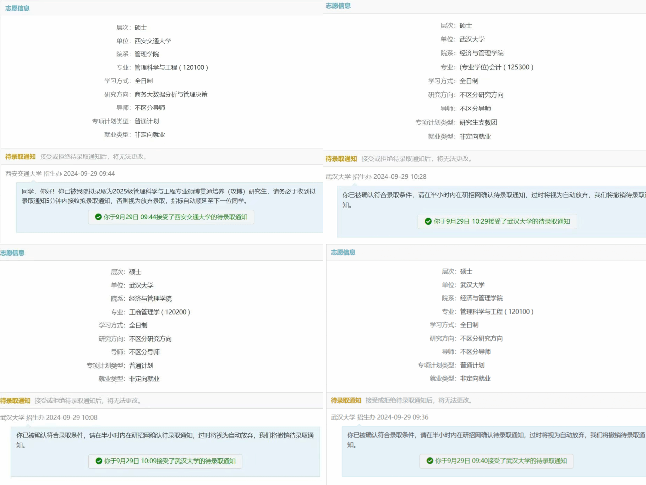 对她们而言,寝室不仅是休憩的场所,更是一方能够安心钻研学业、敞开心扉交流、给予彼此力量的“小天地”。那些共同探讨课程难题时的热烈讨论,毫无保留分享学习资料的真诚,为彼此 pre 精心出谋划策的认真,在疲惫迷茫时耐心倾听、暖心鼓励的瞬间,看似平凡,却悄然汇聚成一股坚定的力量,支撑着她们在各自的专业道路上稳步前行。在备战保研的日子里,她们也曾因压力而红了眼眶,但彼此的拥抱与鼓励,让她们擦干眼泪继续前行。最终,所有的努力都化作了一张张梦校的录取通知,绽放在那个收获的季节。