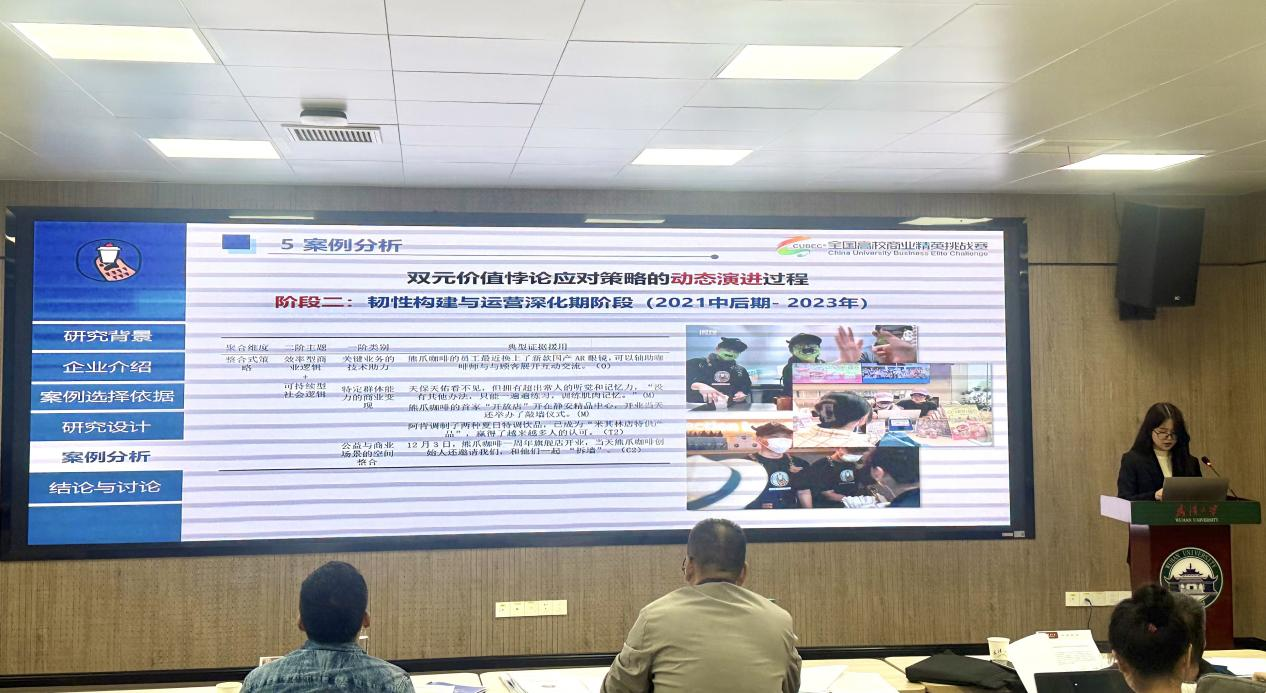 工商管理系副主任王罡教授担任评委,从研究论文主题的代表性、视角的全面性、学术的严谨性、价值的深刻性以及表达的准确性等多个维度对参赛作品与现场展示进行综合考评。经过两个半小时的激烈角逐,2支优秀队伍凭借严谨高质的研究论文,将代表海棠书屋